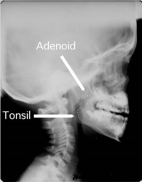 Pemeriksaan adenoid yang paling mudah adalah dengan melakukan Foto Rotgen adenoid, akan tampak sesuatu yang menutupi belakang hidung.
